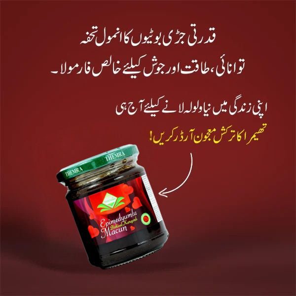 +Themra Epimedium Macun energy, stamina aur physical performance ko boost karta hai. Ye vitality barhata hai, blood circulation ko behtar banata hai aur long-lasting endurance support karta hai. Ye confidence improve karta hai aur naturally passion ko restore karta hai.